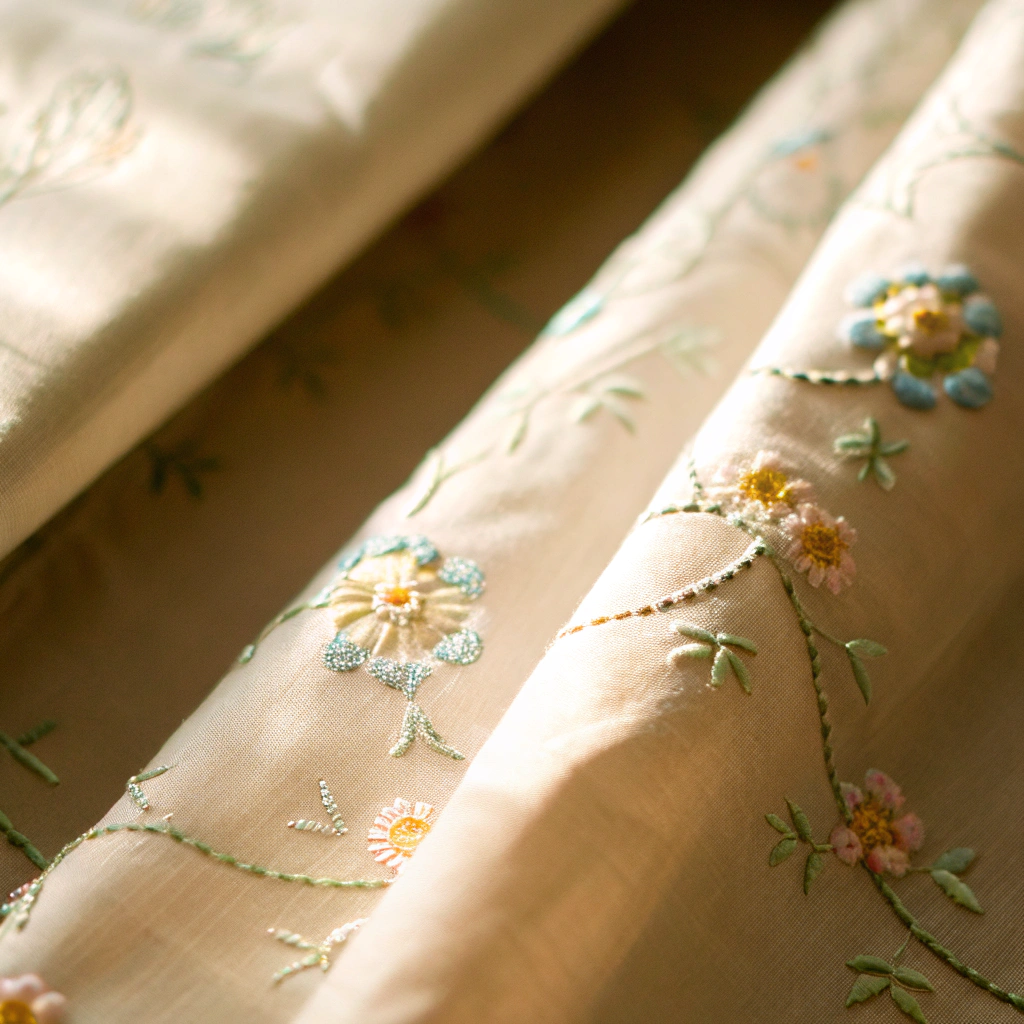 Our patterns echo real 18th-century embroidery motifs—delicate florals,